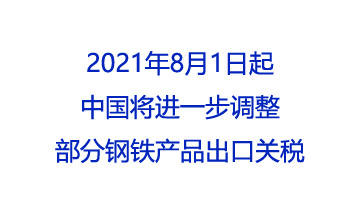 • 2021年8月1日起中國(guó)將進(jìn)一步調(diào)整部分鋼鐵產(chǎn)品出口關(guān)稅